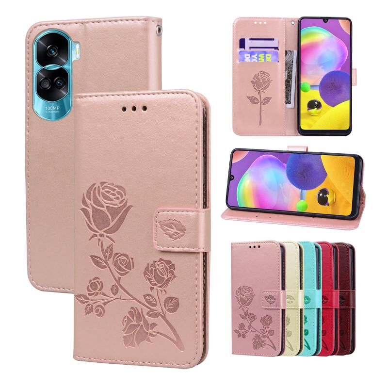 For Honor 90 Lite Rose Embossed Flip PU Leather Phone Case(Rose Gold)