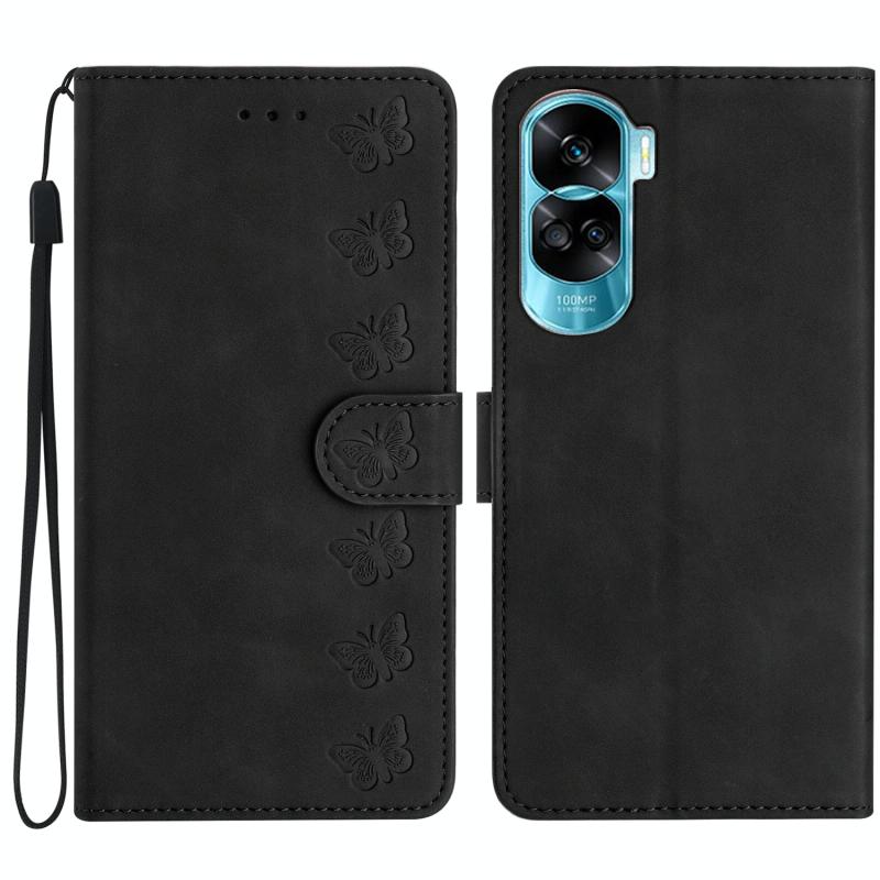 Θήκη τηλεφώνου από δέρμα με ανάγλυφα επτά πεταλούδες για Honor 90 Lite (Μαύρο)