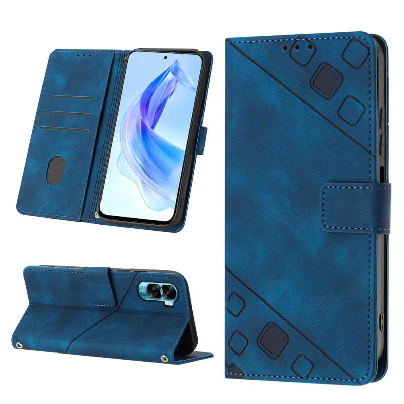 For Honor 90 Lite Skin-feel Embossed Leather Phone Case(Blue)