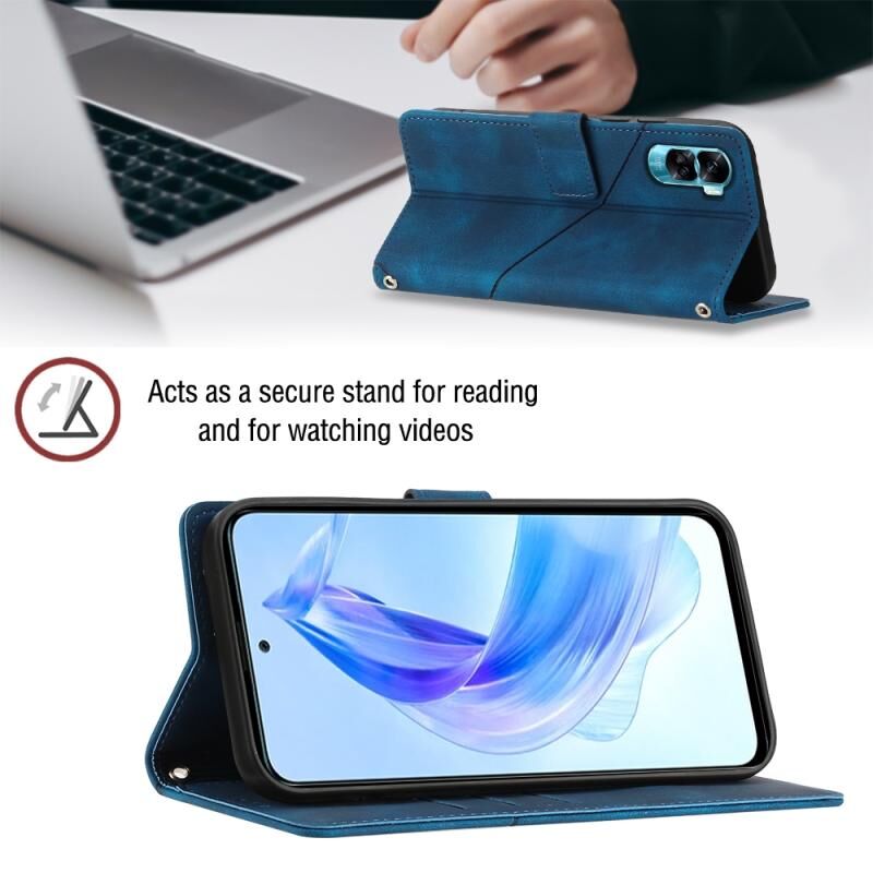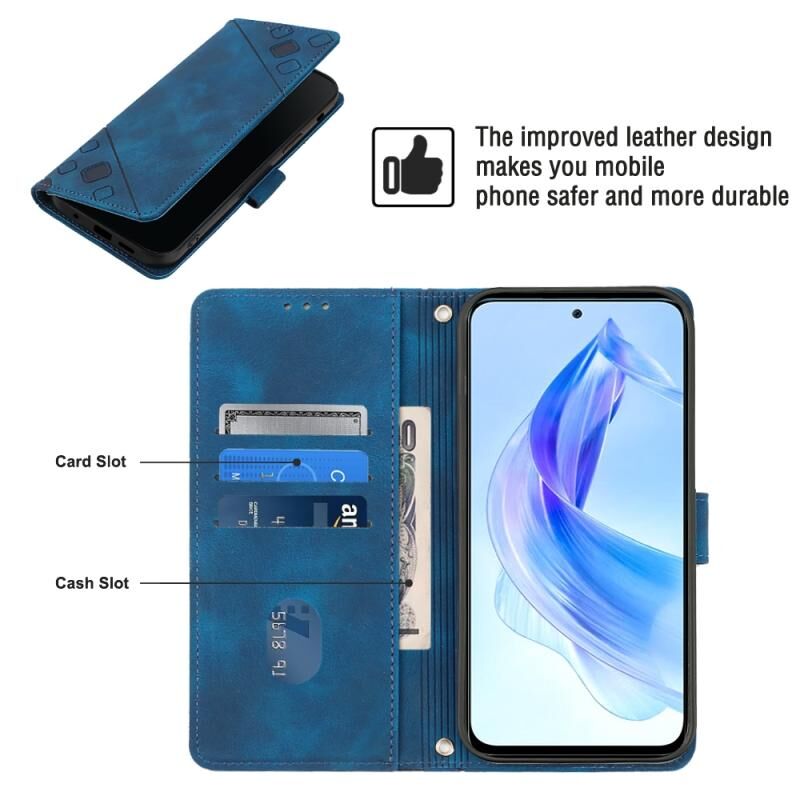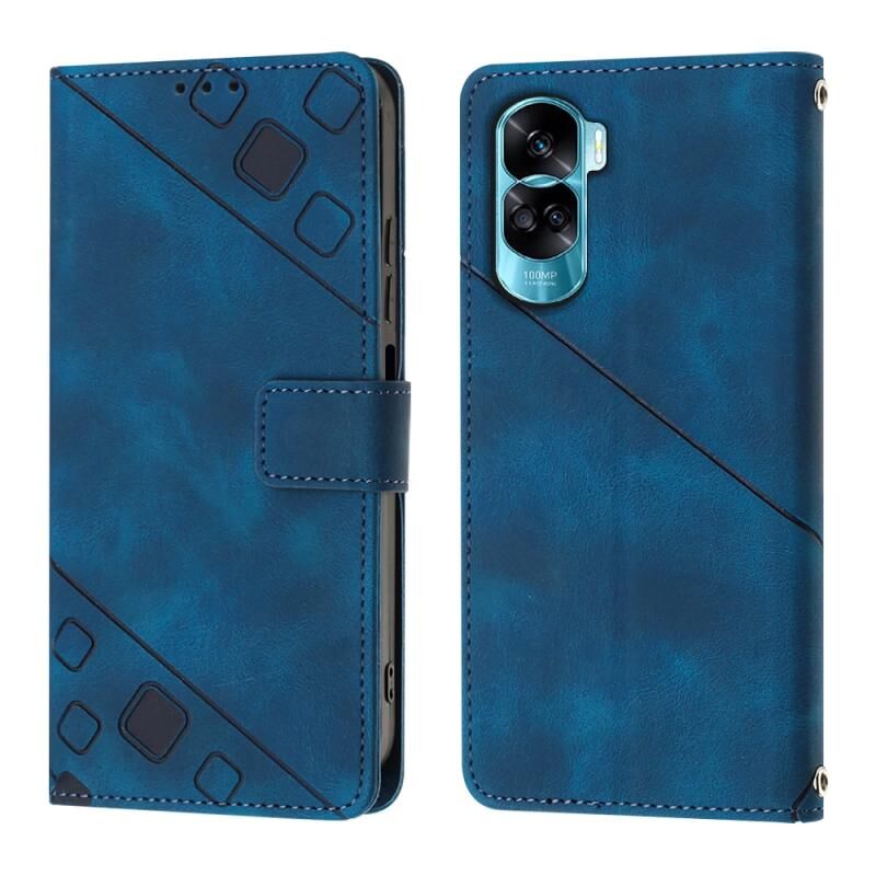 Θήκη τηλεφώνου από δέρμα με ανάγλυφη υφή για Honor 90 Lite (Μπλε)