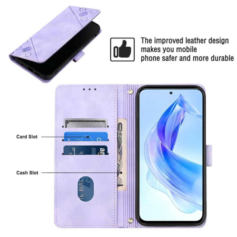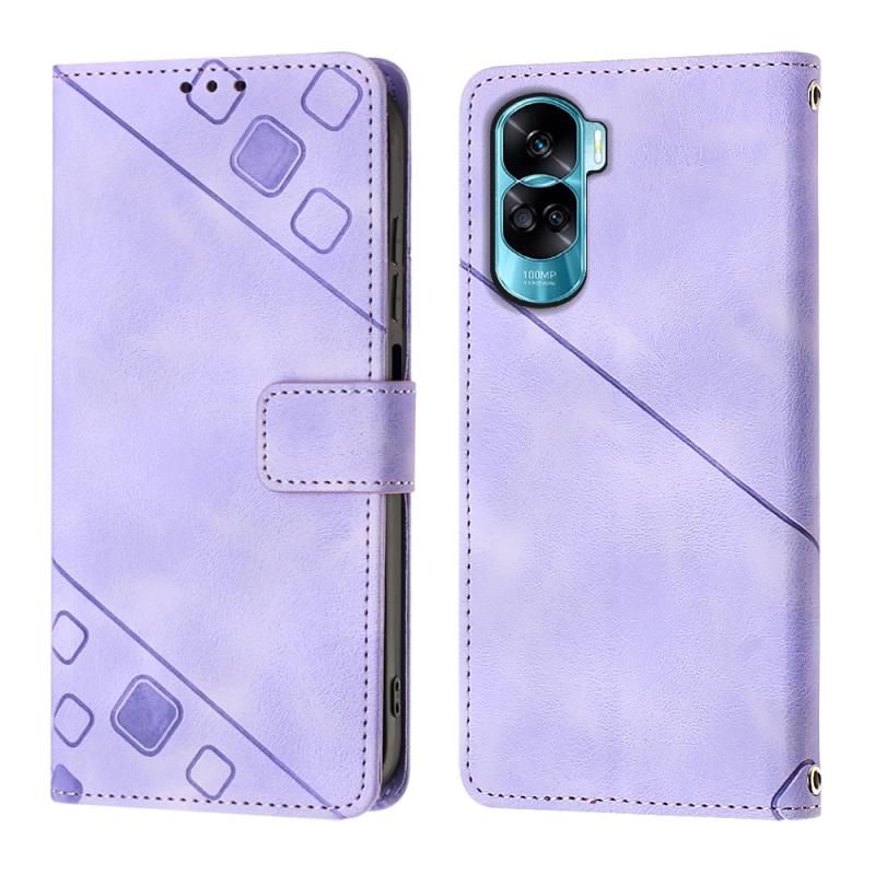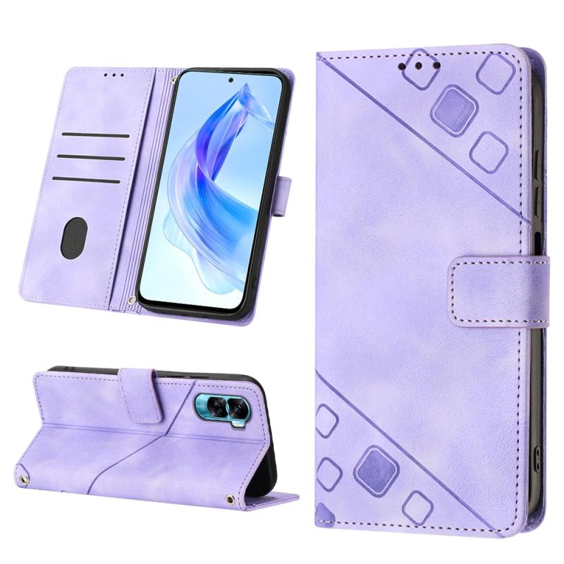 For Honor 90 Lite Skin-feel Embossed Leather Phone Case(Light Purple)