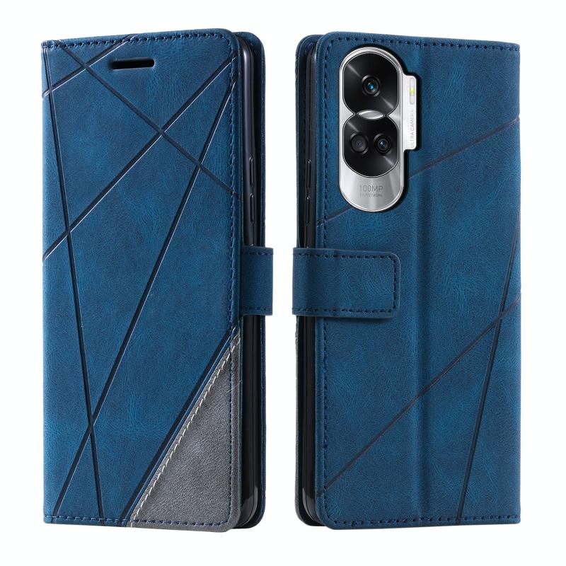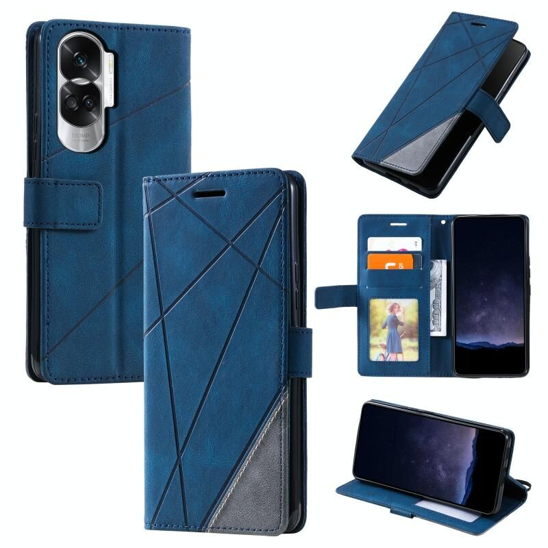 For Honor 90 Lite Skin Feel Splicing Leather Phone Case(Blue)