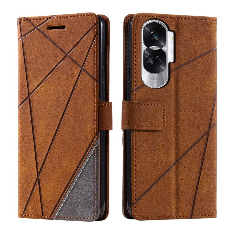For Honor 90 Lite Skin Feel Splicing Leather Phone Case(Brown)