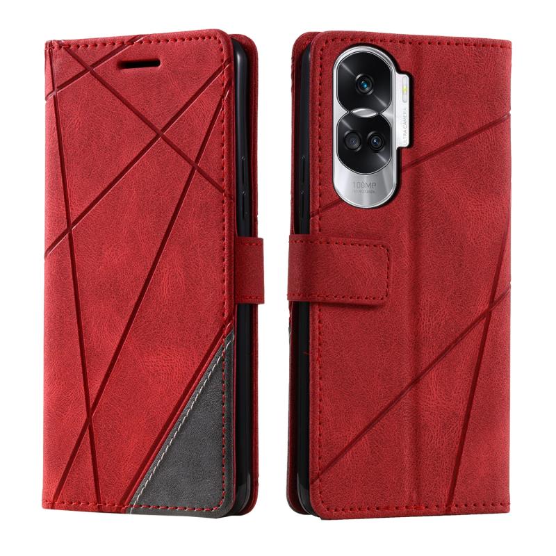 For Honor 90 Lite Skin Feel Splicing Leather Phone Case(Red)