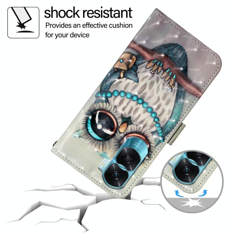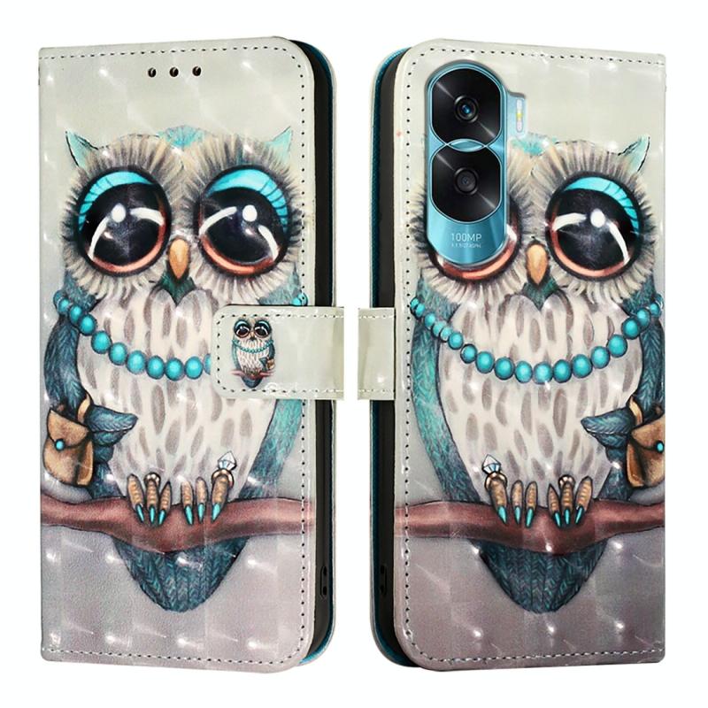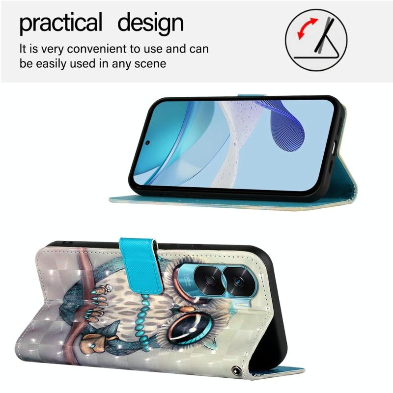 For Honor 90 Lite / X50i 3D Painting Horizontal Flip Leather Phone Case(Grey Owl)