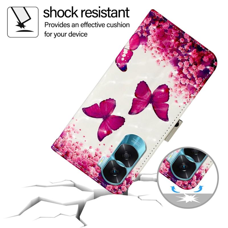 For Honor 90 Lite / X50i 3D Painting Horizontal Flip Leather Phone Case(Rose Butterfly)