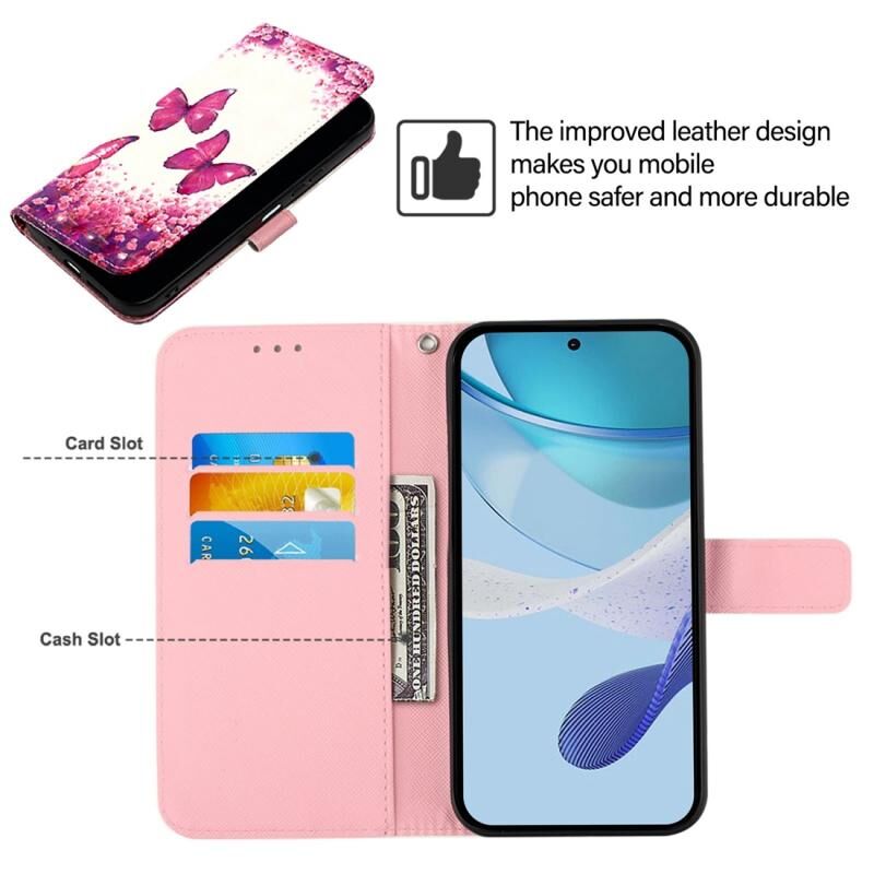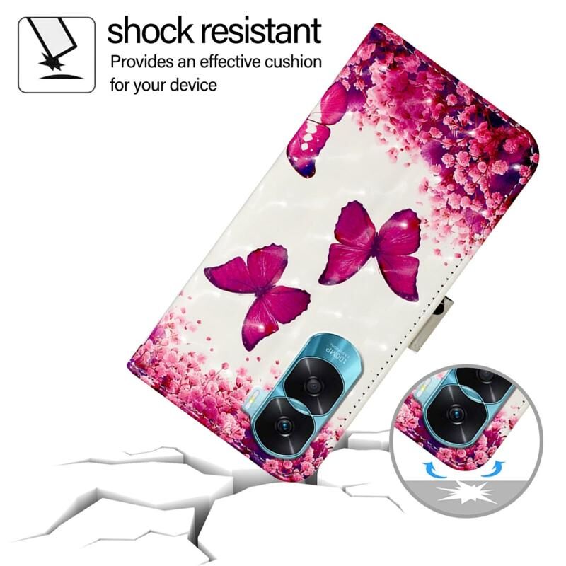 Θήκη τηλεφώνου από δέρμα με οριζόντιο άνοιγμα και τρισδιάστατη ζωγραφική για Honor 90 Lite / X50i (Ροζ Πεταλούδα)