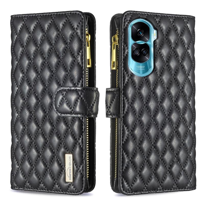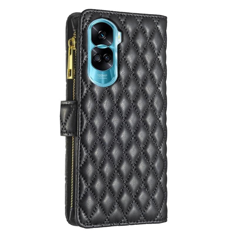 For Honor 90 Lite/X50i Diamond Lattice Zipper Wallet Leather Flip Phone Case(Black)