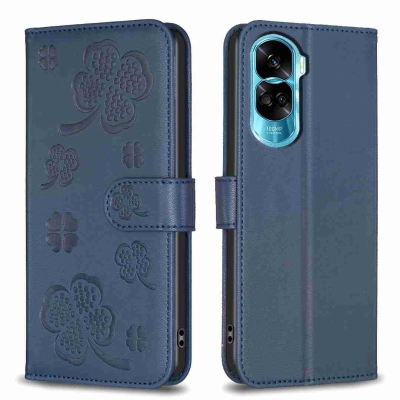 For Honor 90 Lite / X50i Four-leaf Embossed Leather Phone Case(Blue)