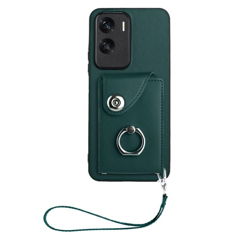 Για Honor 90 Lite / X50i Οργανική κάρτα τσάντα δαχτυλίδι κάτοχος PU υπόθεση τηλεφώνου με κορδόνι (πράσινο)
