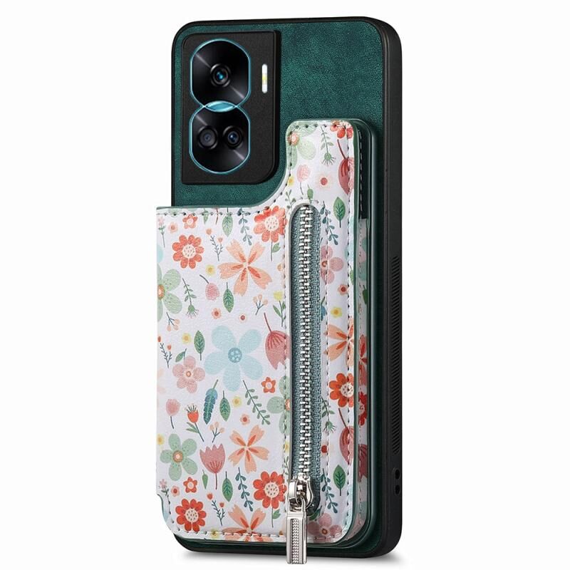 Θήκη κινητού τηλεφώνου με φερμουάρ και σχέδιο retro για Honor 90 Lite / X50i (Ροζ)