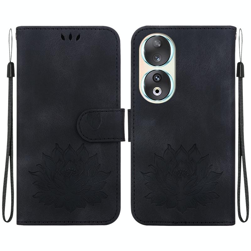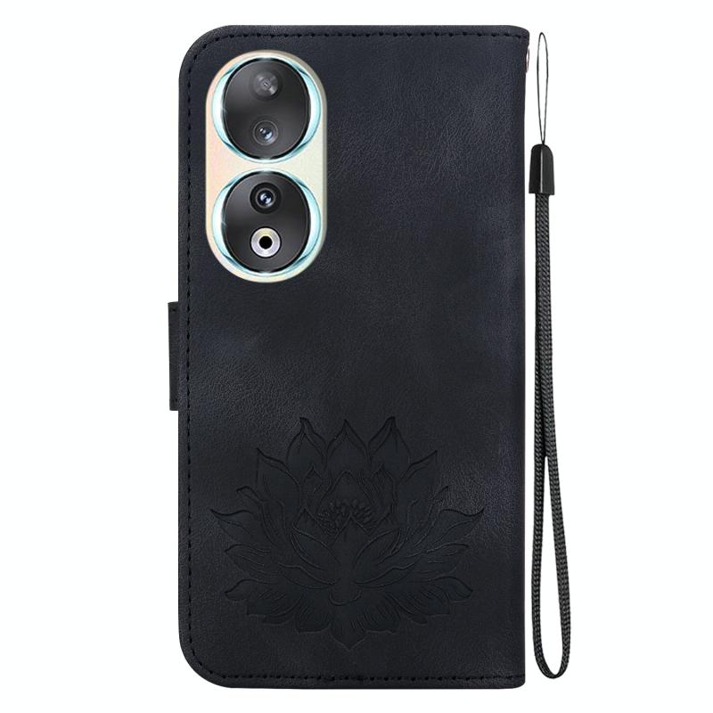 For Honor 90 Lotus Embossed Leather Phone Case(Black)