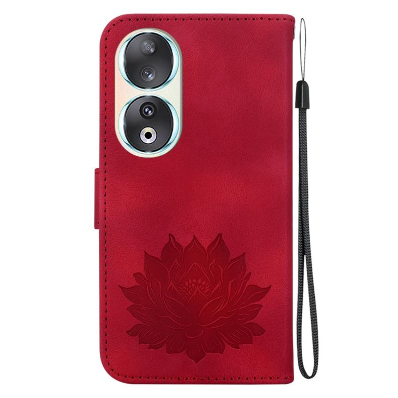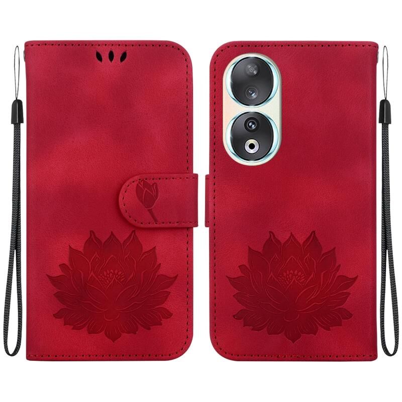 For Honor 90 Lotus Embossed Leather Phone Case(Red)