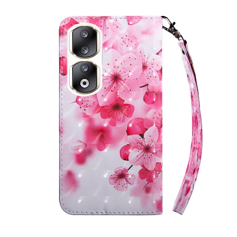 For Honor 90 Pro 3D Painted Leather Phone Case(Red Flower)