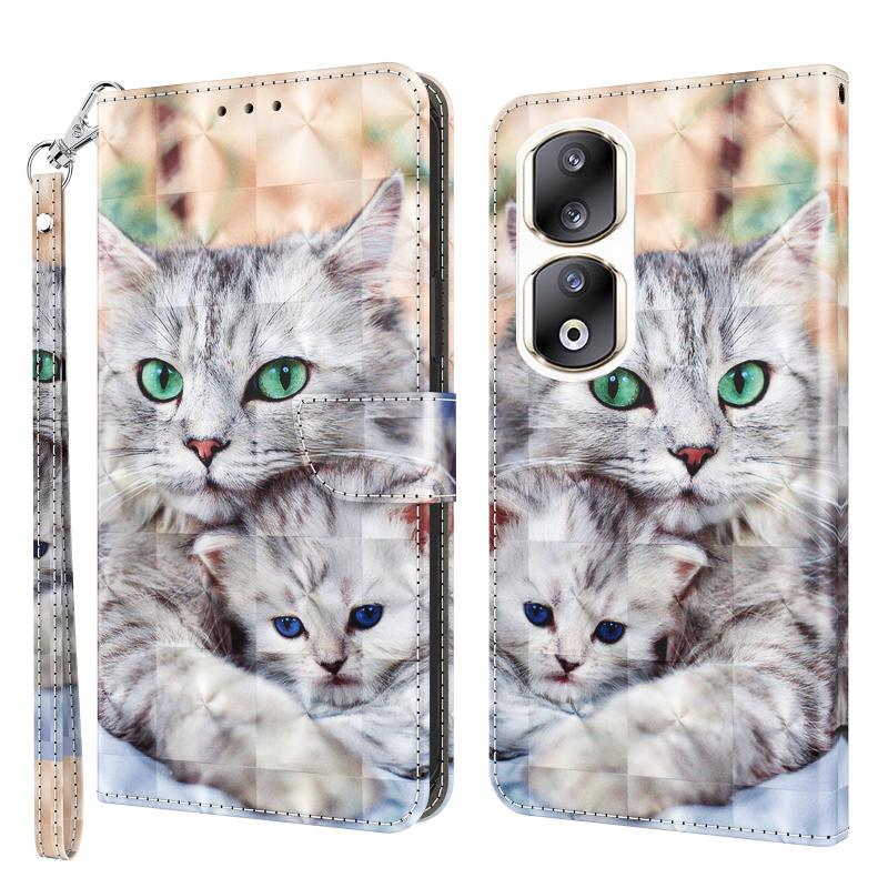 For Honor 90 Pro 3D Painted Leather Phone Case(Two Loving Cats)