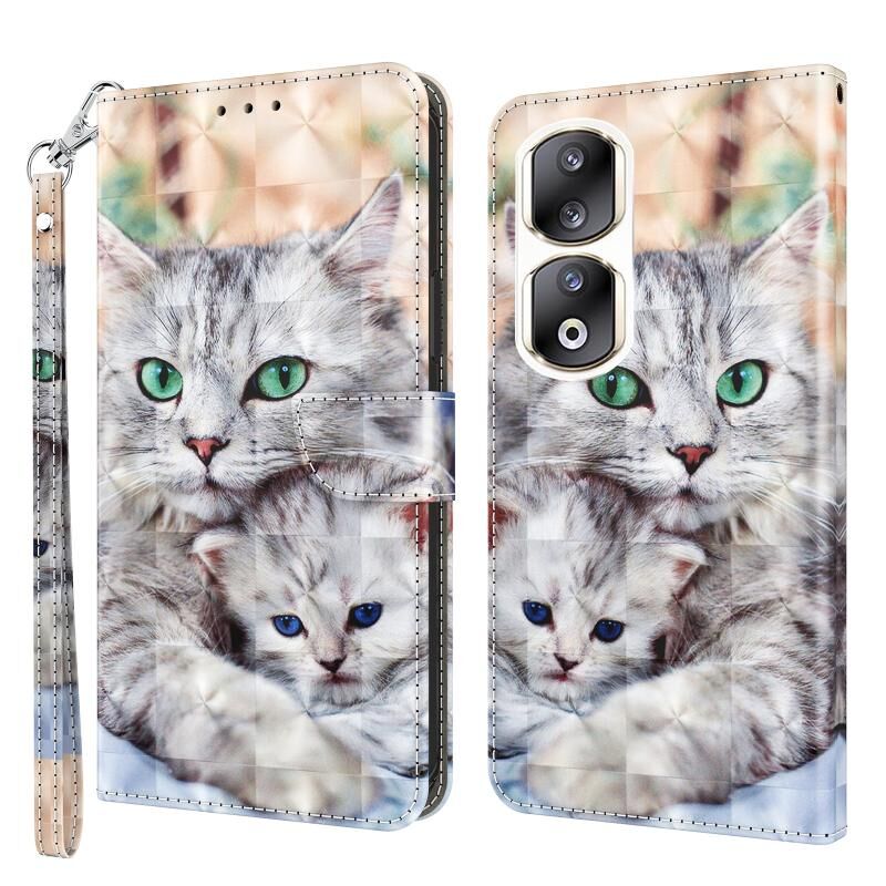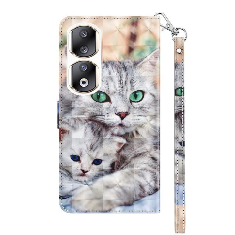 Θήκη τηλεφώνου από δέρμα με τρισδιάστατη βαφή για Honor 90 Pro (Δύο ερωτευμένες γάτες)