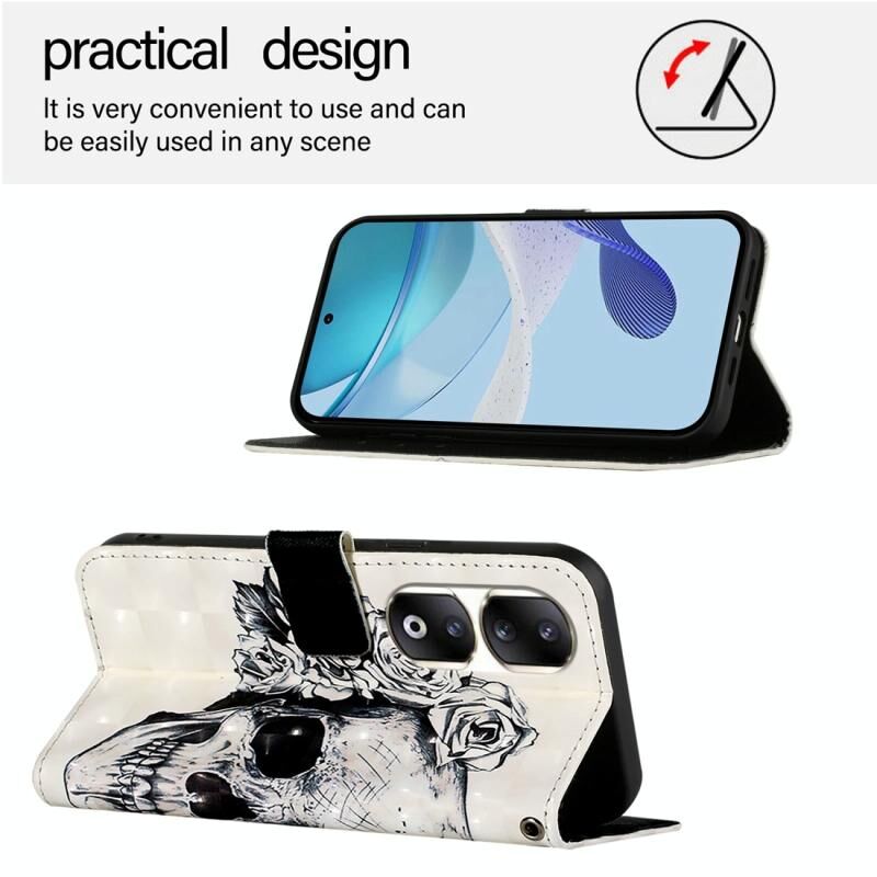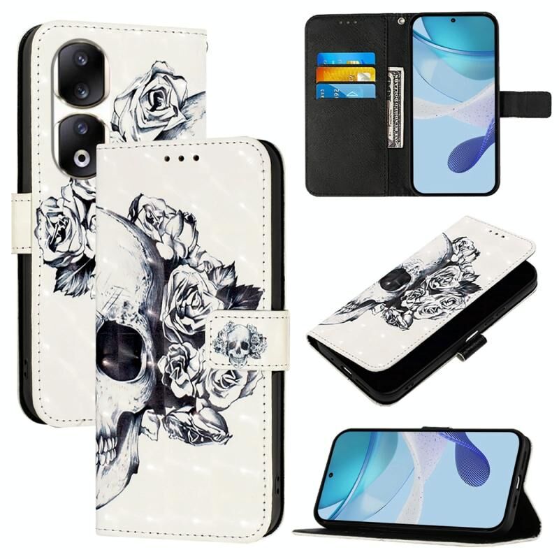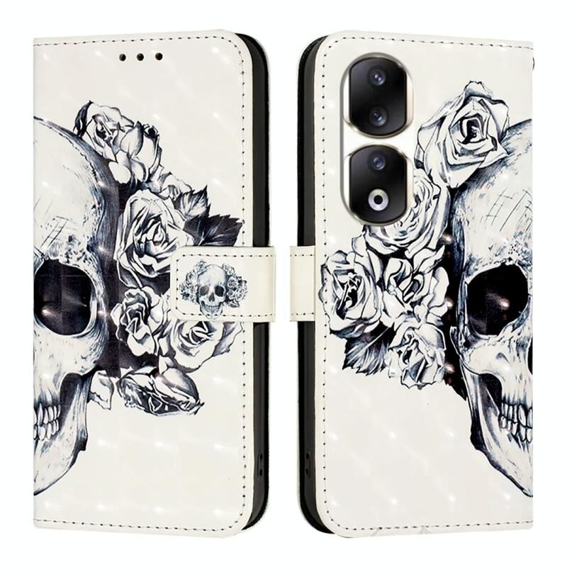 Θήκη τηλεφώνου από δέρμα με οριζόντια αναδίπλωση και τρισδιάστατη ζωγραφική για Honor 90 Pro (Κρανίο)
