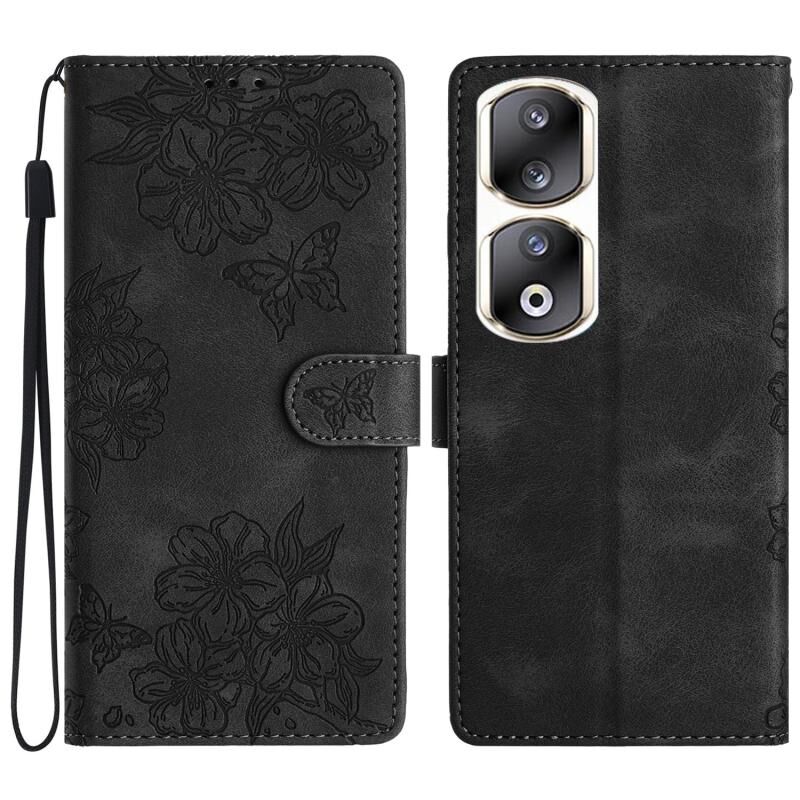 Θήκη τηλεφώνου For Honor 90 Pro 5G με ανάγλυφο PU υλικό, αίσθηση πεταλούδας κερασιάς (Κόκκινο)