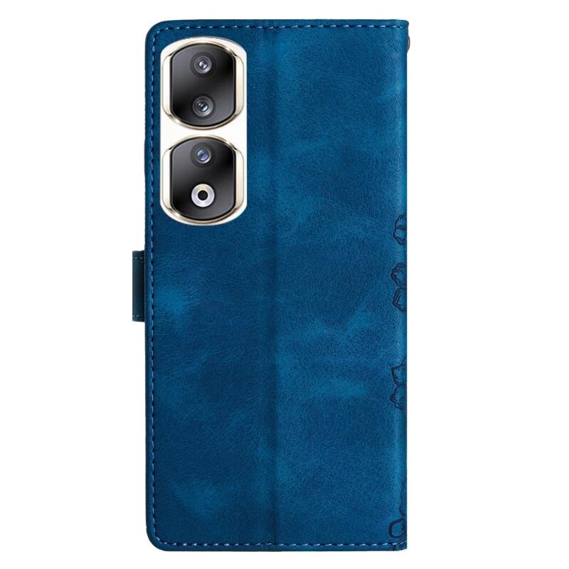 Θήκη τηλεφώνου For Honor 90 Pro 5G με ανάγλυφο PU υλικό, αίσθηση πεταλούδας κερασιάς (Μπλε)