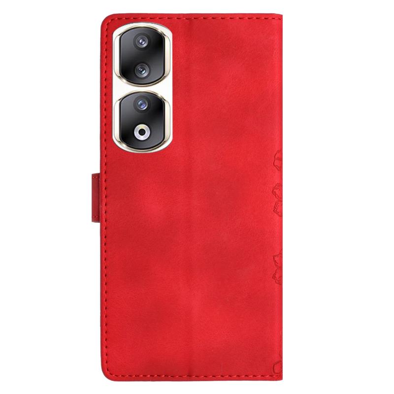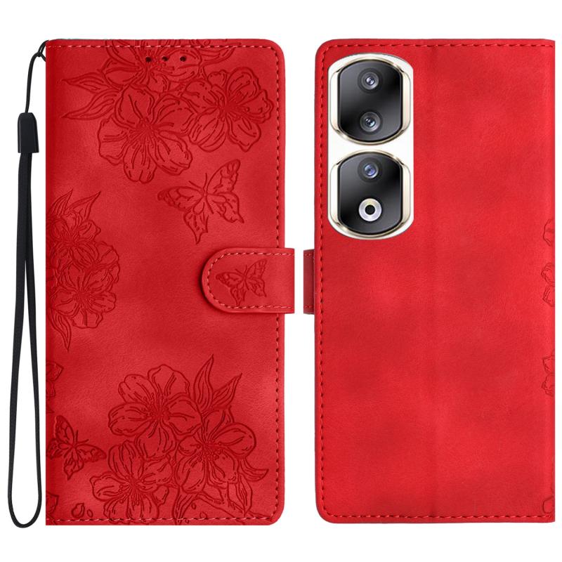 For Honor 90 Pro 5G Cherry Blossom Butterfly Skin Feel Embossed PU Phone Case(Red)