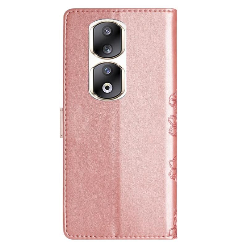 Θήκη τηλεφώνου For Honor 90 Pro 5G με ανάγλυφο PU υλικό, αίσθηση πεταλούδας κερασιάς (Κόκκινο)