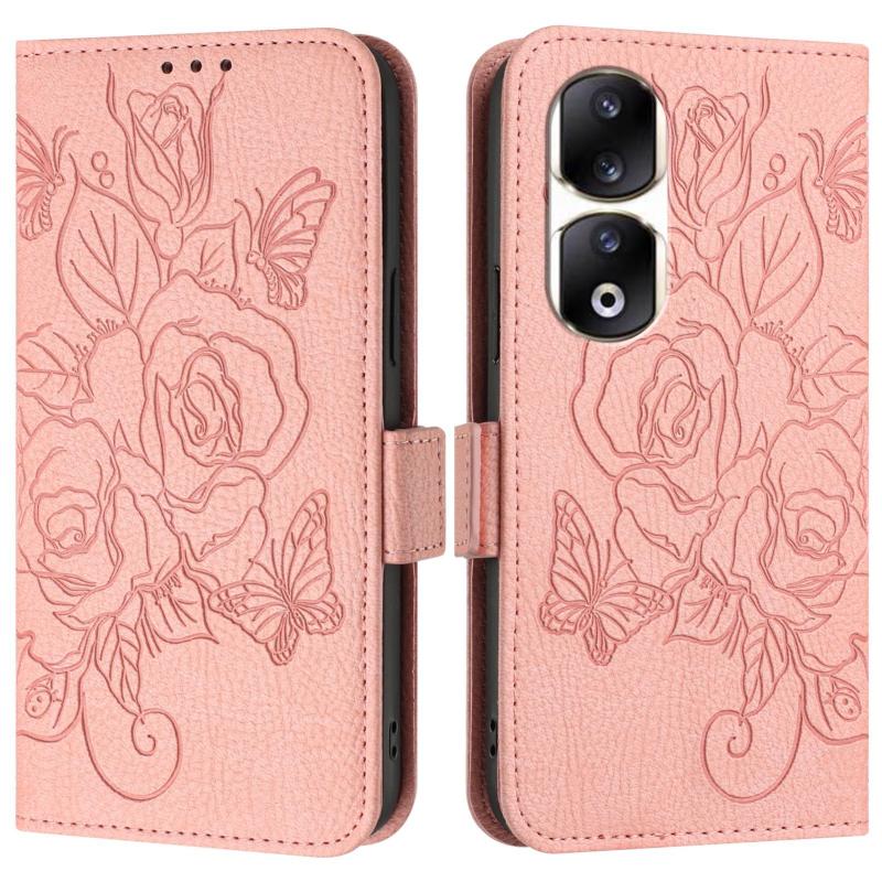For Honor 90 Pro 5G Embossed Rose RFID Anti-theft Leather Phone Case(Pink)