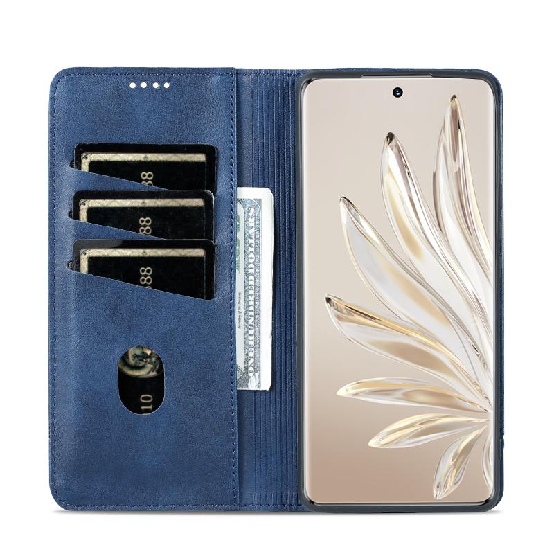 Θήκη τηλεφώνου από δέρμα με μαγνητική υφή μοσχαριού για Honor 90 Pro AZNS (Σκούρο Μπλε) (AZNS)
