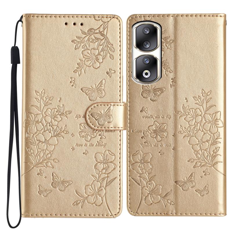 For Honor 90 Pro Butterflies And Flowers Leather Phone Case(Gold)
