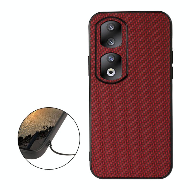 Θήκη κινητού τηλεφώνου για Honor 90 Pro με υφή ανθρακονήματος, ανθεκτική στις κρούσεις (Κόκκινο)
