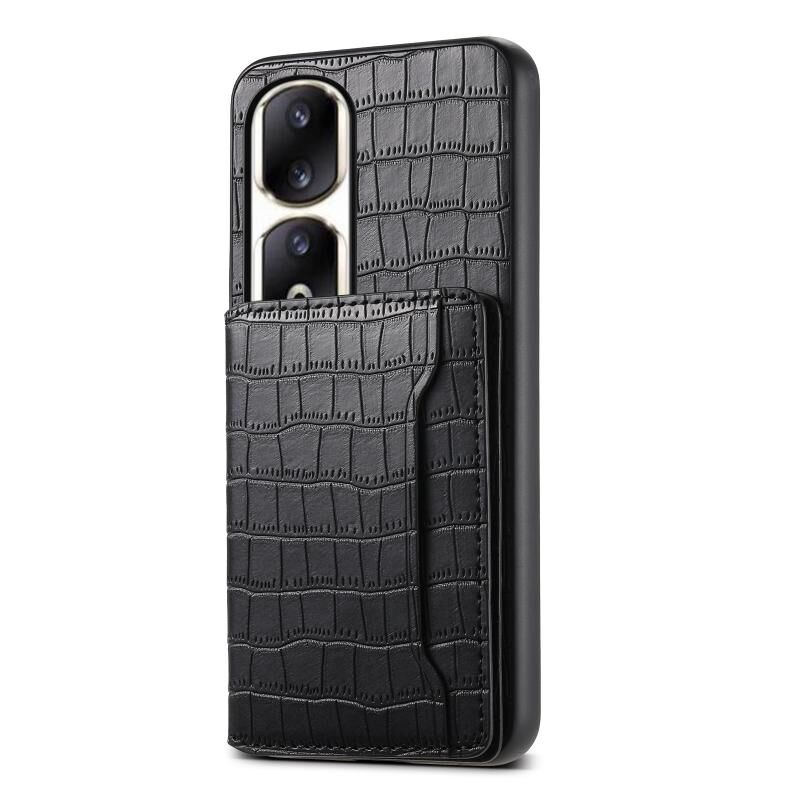 Θήκη κινητού τηλεφώνου πλήρους κάλυψης για Honor 90 Pro, σχέδιο τσάντας με υφή κροκόδειλου (Καφέ)