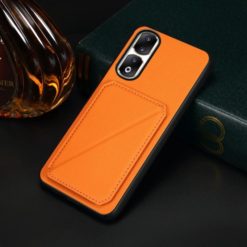 For Honor 90 Pro D04 Calf Texture Dual Card Slot Holder Phone Case(Orange)