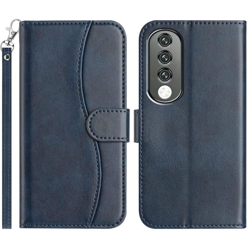 For Honor 90 Pro Dual-Folded S-shape Leather Phone Case(Navy Blue)