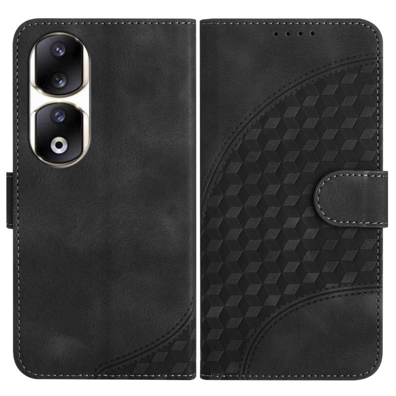 For Honor 90 Pro Elephant Head Embossed Phone Leather Case with Lanyard(Black)