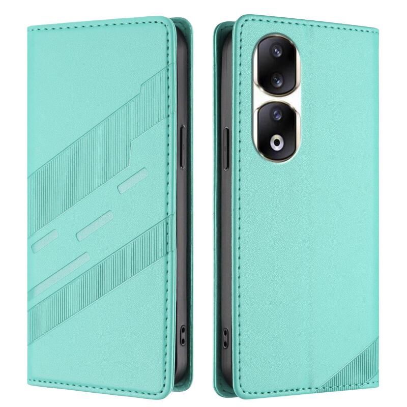 Θήκη τηλεφώνου από δέρμα retro, πολυλειτουργικό πορτοφόλι με ανάγλυφο σχέδιο για Honor 90 Pro (Μαύρο)