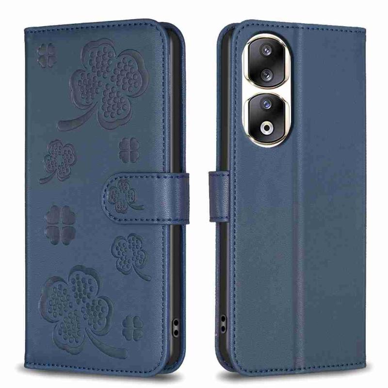 For Honor 90 Pro Four-leaf Embossed Leather Phone Case(Blue)