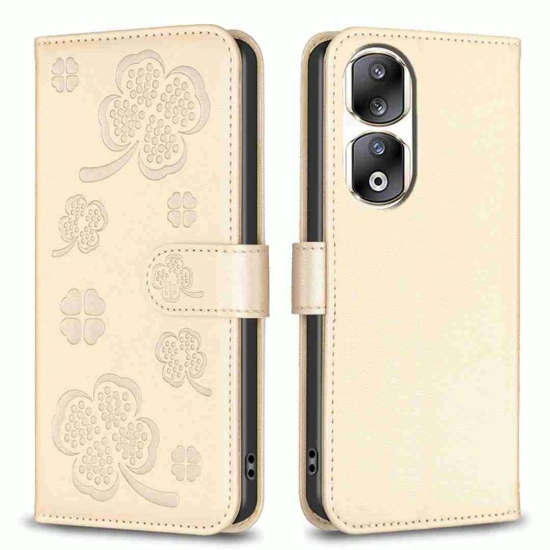 For Honor 90 Pro Four-leaf Embossed Leather Phone Case(Gold)