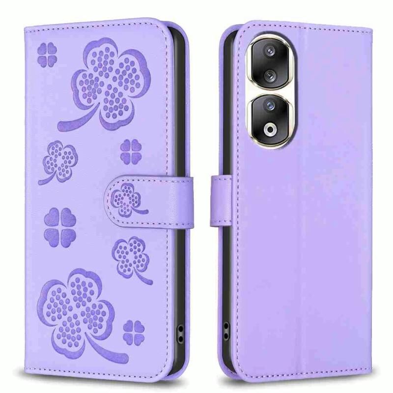 For Honor 90 Pro Four-leaf Embossed Leather Phone Case(Purple)