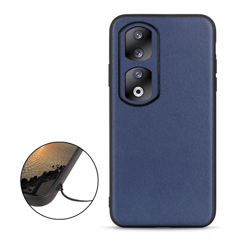 Θήκη τηλεφώνου από γνήσιο δέρμα αρνιού με υφή Lambskin για Honor 90 Pro (Μπλε)