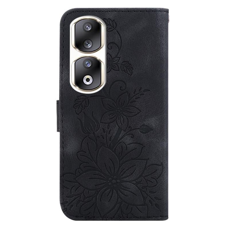Για Honor 90 Pro Lily ανάγλυφη δερμάτινη θήκη τηλεφώνου (Μαύρο)
