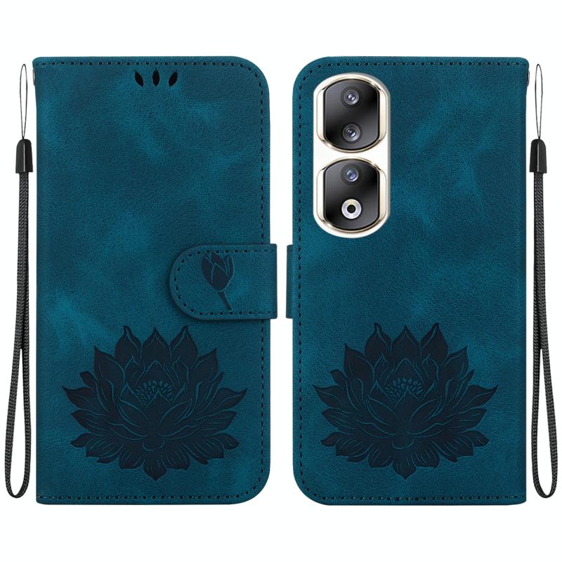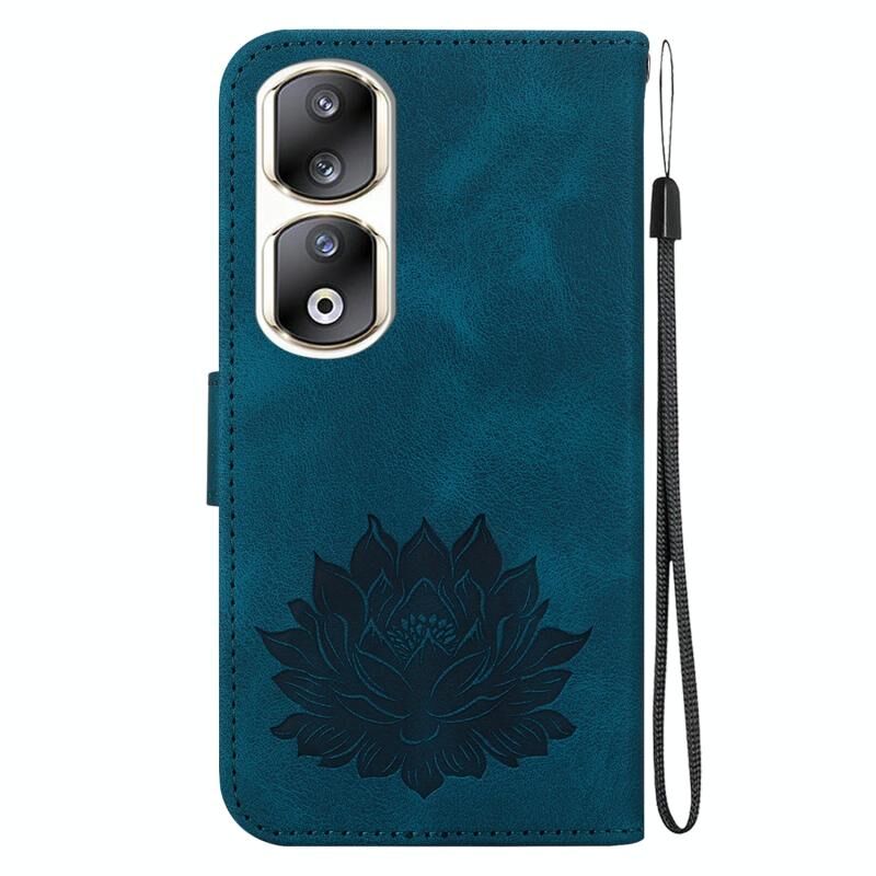 For Honor 90 Pro Lotus Embossed Leather Phone Case(Dark Blue)