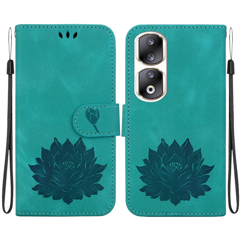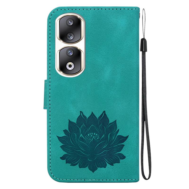 For Honor 90 Pro Lotus Embossed Leather Phone Case(Green)