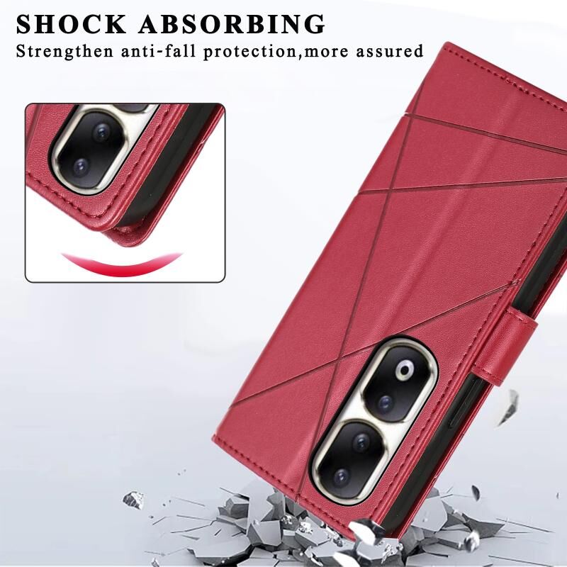 Θήκη τηλεφώνου για Honor 90 Pro από γνήσιο δέρμα PU με ανάγλυφη υφή και γραμμές (Μπλε)