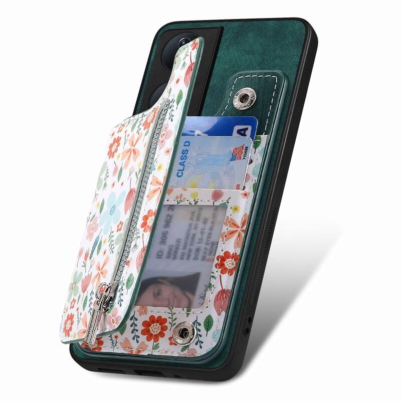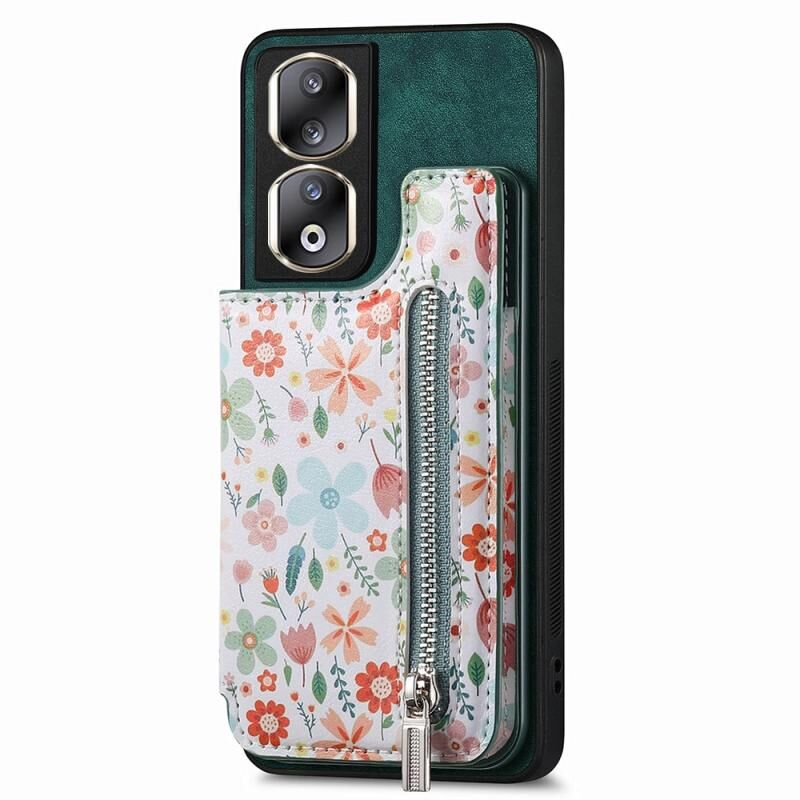 Θήκη κινητού τηλεφώνου με φερμουάρ και ανάγλυφο σχέδιο για Honor 90 Pro (πράσινο)