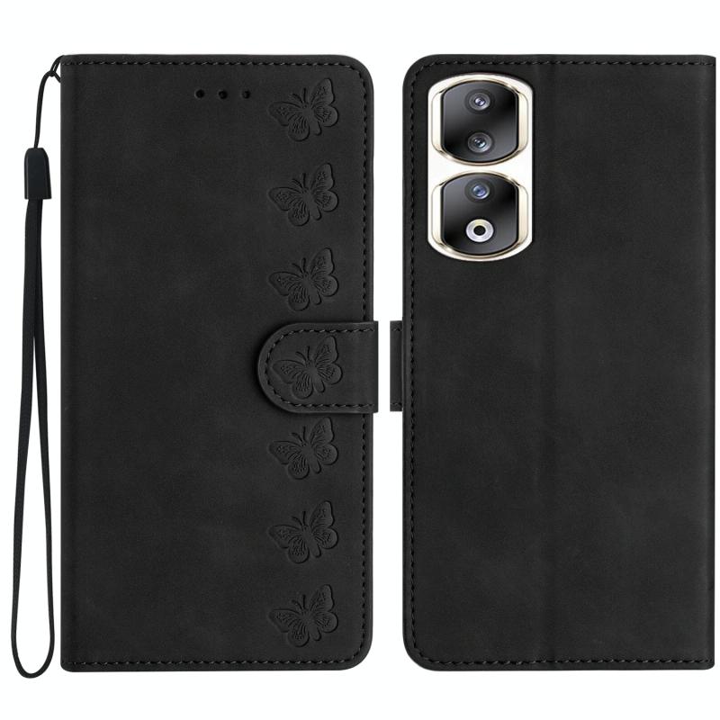 Θήκη τηλεφώνου από δέρμα με ανάγλυφο σχέδιο επτά πεταλούδων για Honor 90 Pro (Μαύρο)