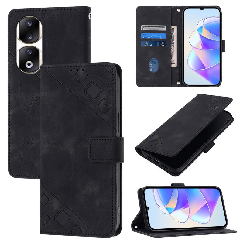 For Honor 90 Pro Skin-feel Embossed Leather Phone Case(Black)