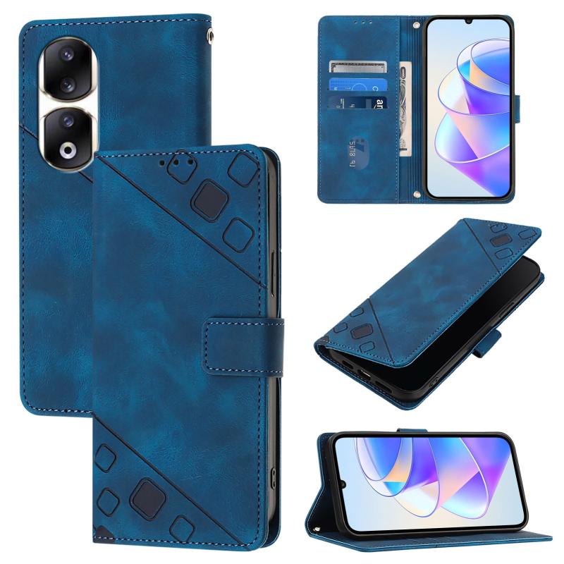 For Honor 90 Pro Skin-feel Embossed Leather Phone Case(Blue)
