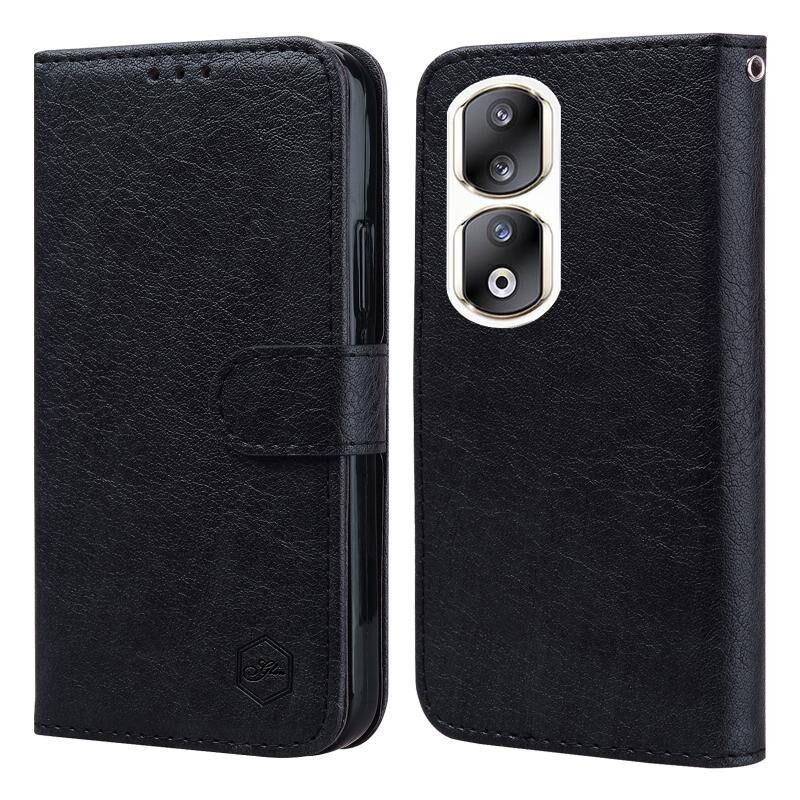 Θήκη κινητού τηλεφώνου για Honor 90 Pro, Υφή δέρματος λαδιού, PU + TPU (Μαύρο)