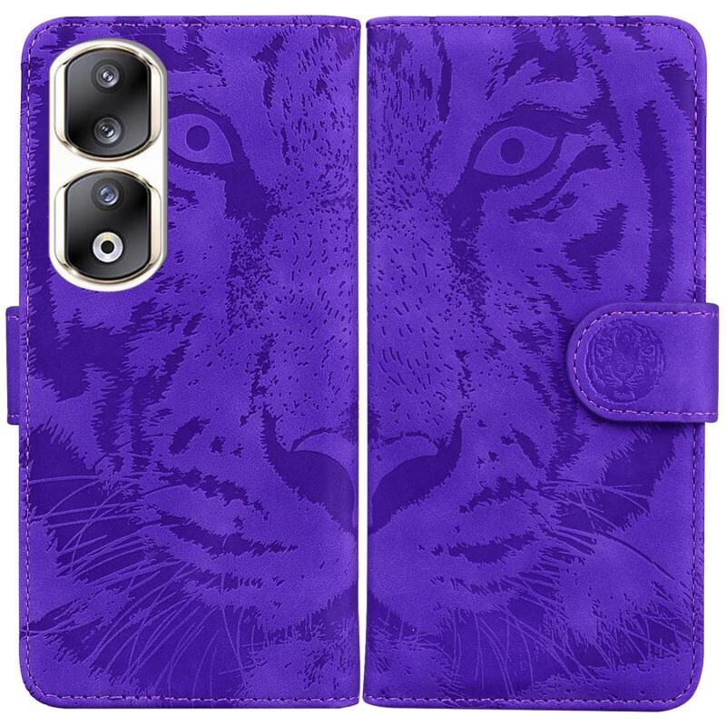 Θήκη τηλεφώνου από δέρμα με σχέδιο Tiger Embossing Flip για Honor 90 Pro (Μωβ)