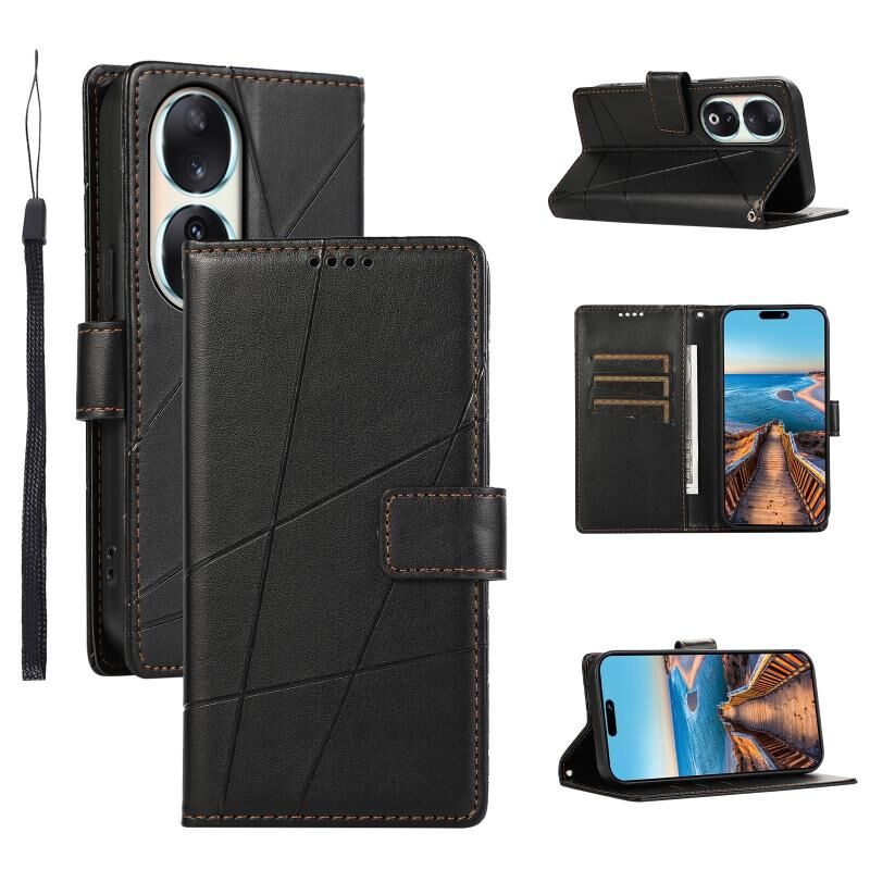 Θήκη τηλεφώνου για Honor 90 PU με ανάγλυφη υφή δέρματος και διακοσμητική γραμμή (Μπλε)
