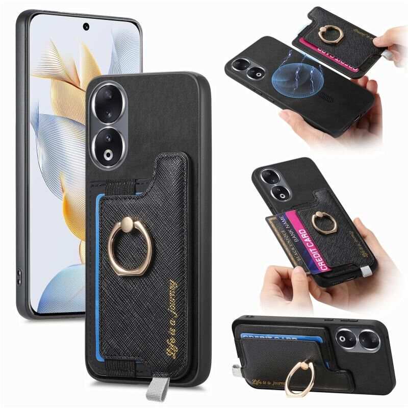 Θήκη τηλεφώνου Honor 90 Retro Magsafe Δερμάτινος Δακτύλιος Στήριξης Κάρτας (Κίτρινο)